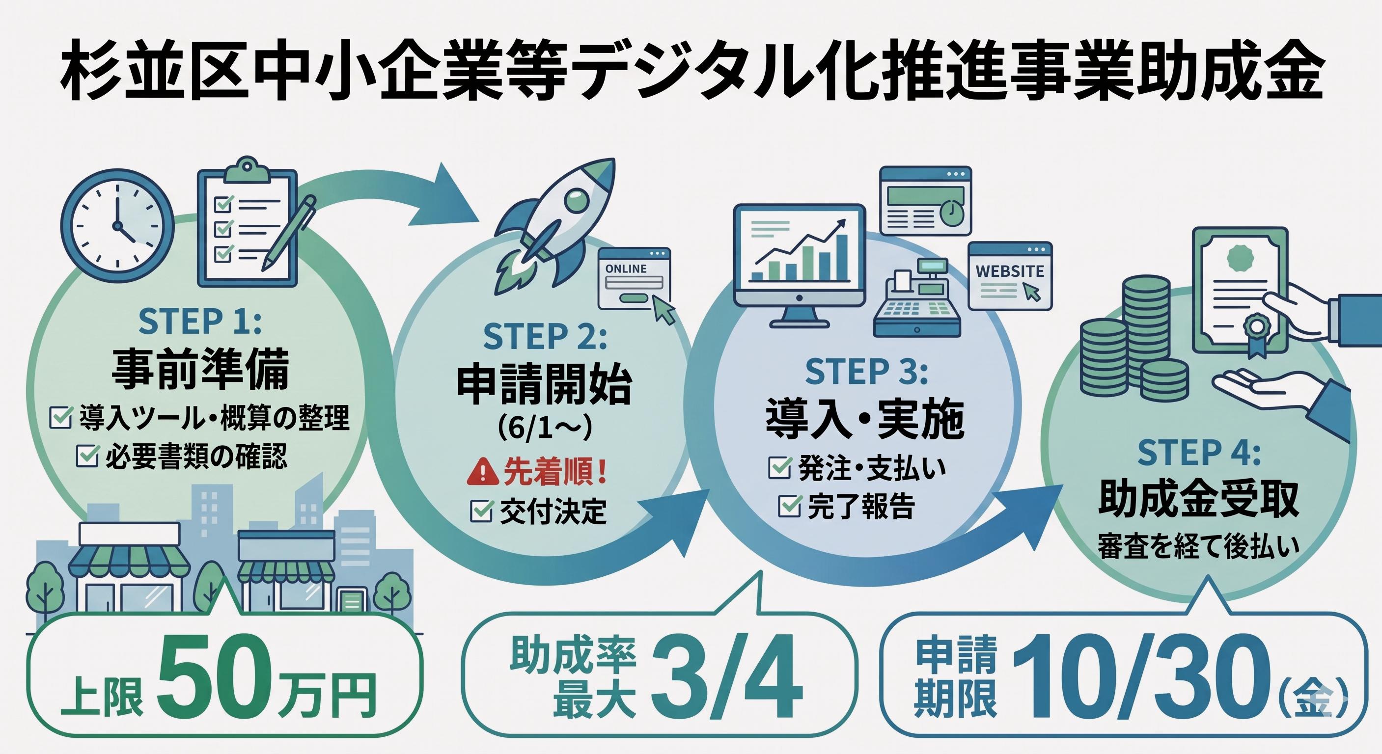 幸い、杉並区では2026年6月1日から「中小企業等デジタル化推進事業助成金」の受付が始まります。