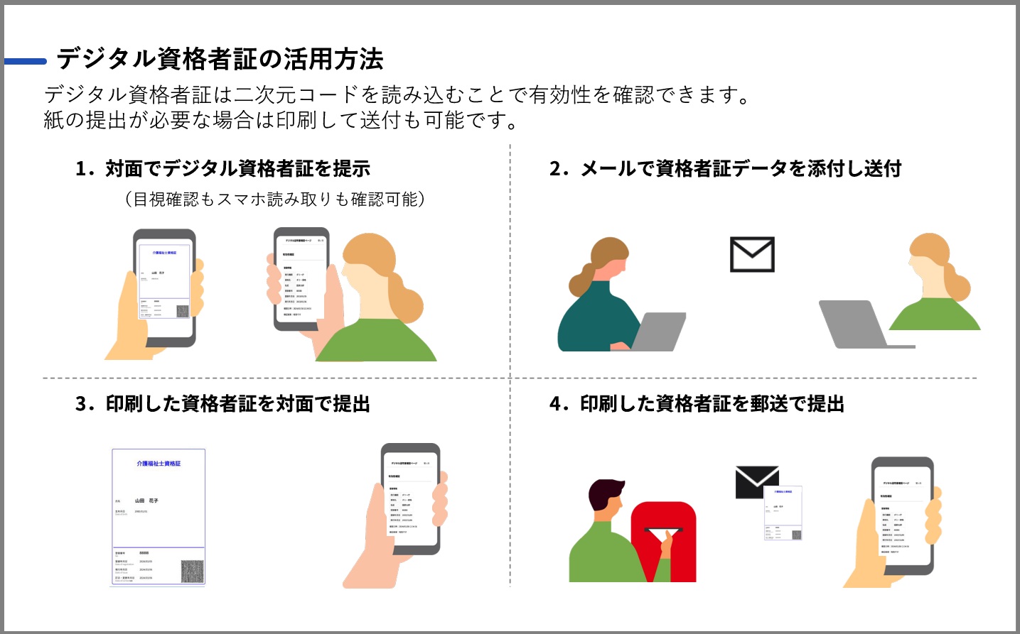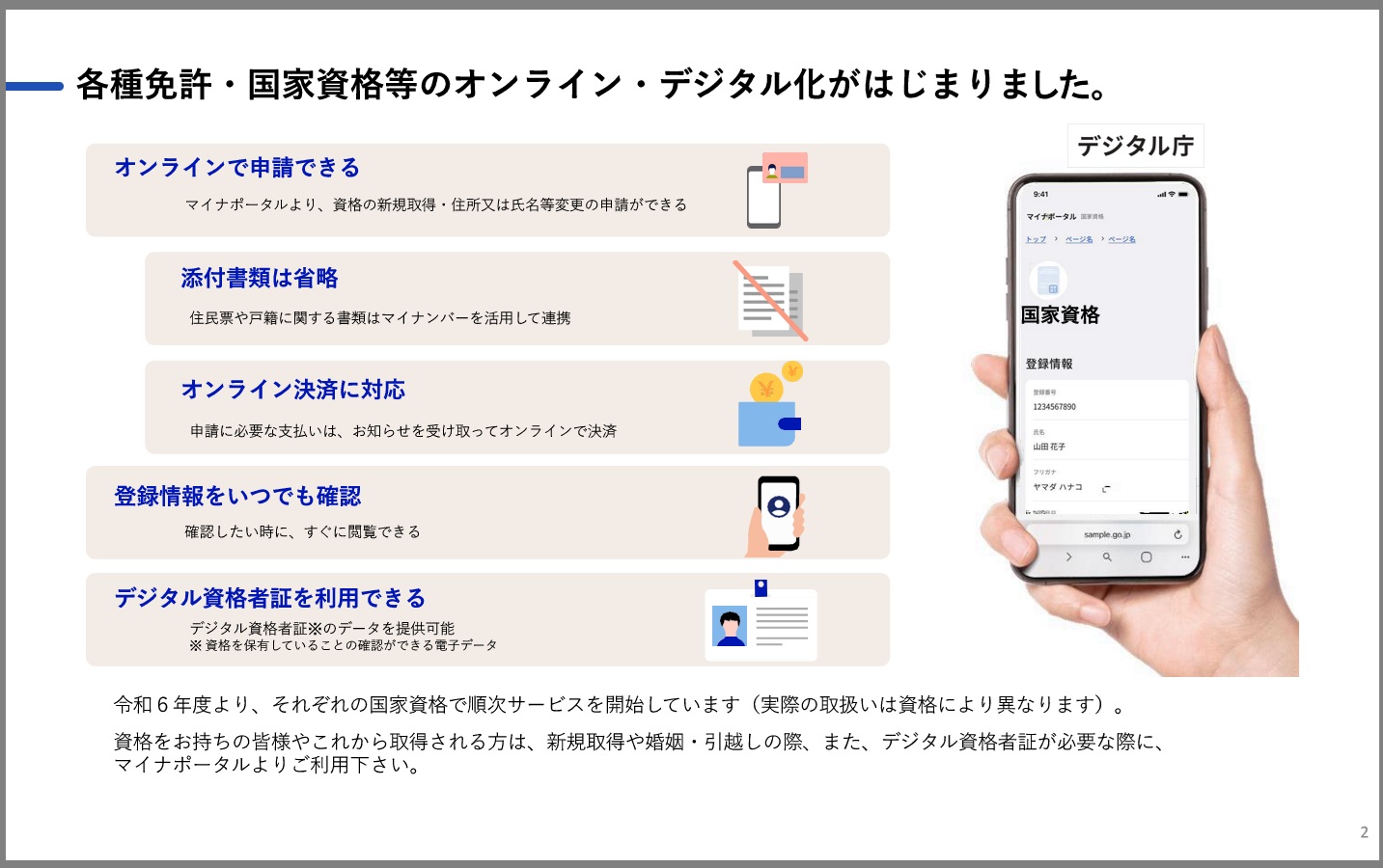 マイナポータルを通じて、スマホやパソコンで資格者証を表示できます。