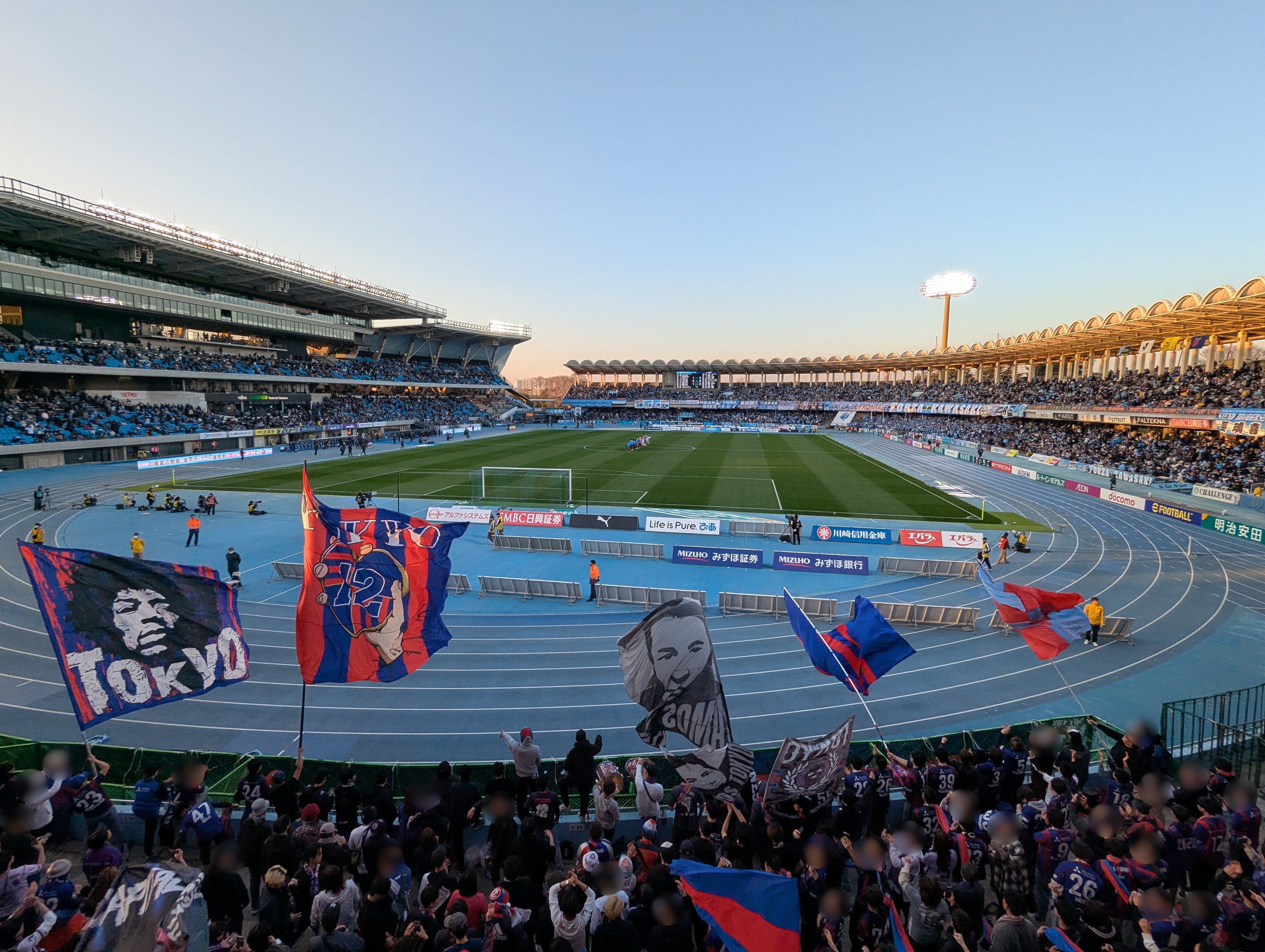 週末の土曜日にJ1百年構想リーグのFC東京vs川崎フロンターレの「多摩川クラシコ」へ。